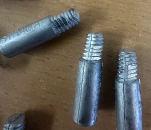 It appears that the machining set up utilised the collet gripping the male thread (pressure diecast anode parted to length) and has severely damaged the thread. Most cases the thread has been flattened, bent and torn.